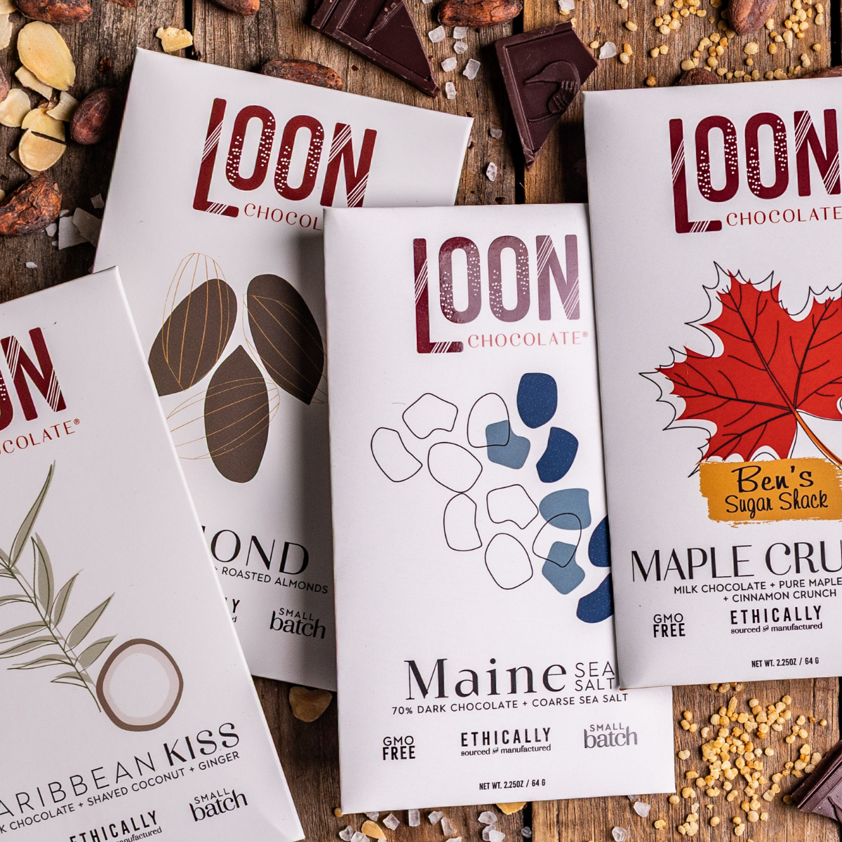 A complete rebranding of Loon Chocolate is complete! We are so grateful for the support we've received in such a short amount of time. With our growing company we gave our packaging a new look!