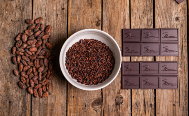 70% Dark Chocolate made from organic cacao topped with roasted almonds that has a very bright fruit like taste. We have also added just a touch of Maine sea salt to really bring out the taste of the roasted almonds.